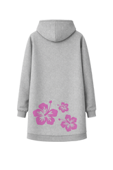 Ein extra lang geschnittener Damen-Hoodie aus weichem, gemütlichem Material. Auf der Vorderseite ist der T1 Bulli mit Aloha-Blumen gestickt, auf der Rückseite rundet ein großflächiger Aloha-Blumen-Druck den Look ab. Perfekt für alle, die Komfort und den Surf-Spirit lieben.